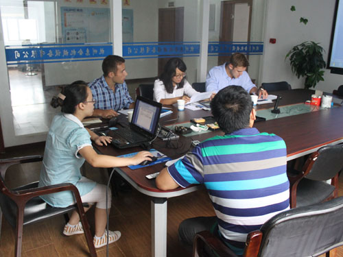 The customer from America due to the expanding business need to order the whole set exploded eggs production line, they come to our company to talk with sales staff and engineers about the specific details of the negotiations.