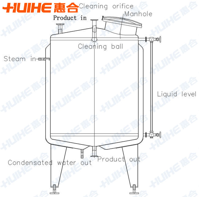 The body of this series of stainless steel tank formed by cylindrical stainless steel, and equipped with sanitary manhole, cleaning ball, liquid level gauge.