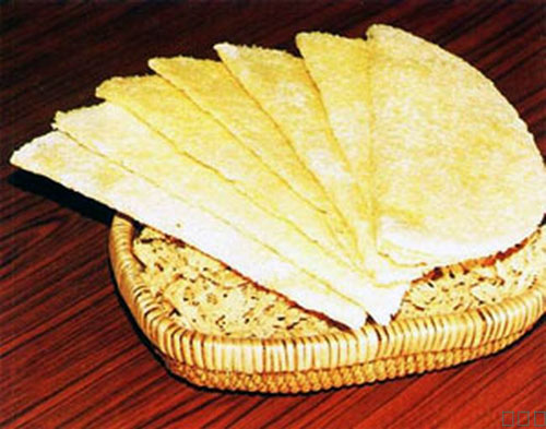 奶皮子,是把馬、羊、牛和駱駝鮮乳倒入鍋中慢火微煮,等其表面凝結一層臘脂肪,用筷子挑起掛通風處晾干即為奶皮子。屬鮮奶中的精華奶皮,蒙古語稱“烏如木”,是奶食品系列中的佳品,營養價值頗高。