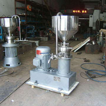 膠體磨屬于超微粉碎設(shè)備,兼?zhèn)浞鬯椤⑷榛⒎稚ⅰ嚢璧裙δ埽梢源媸ァ⑸澳C(jī)、球磨機(jī)、組織搗碎機(jī)等。膠體磨也可用于均質(zhì)。一般來說,其細(xì)化作用要弱于均質(zhì)機(jī),但它對(duì)物料的適應(yīng)能力較強(qiáng)(如高粘度、大顆粒),所以在很多場(chǎng)合下,它用于均質(zhì)機(jī)的前道或者用于高粘度的場(chǎng)合。在固態(tài)物質(zhì)較多時(shí)也常常使用膠體磨進(jìn)行細(xì)化。有時(shí),膠體磨與均質(zhì)機(jī)可以通用,但一般來說,在21Mpa條件下,膠體磨的能量水平小于均質(zhì)機(jī)。