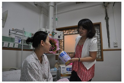 “你好!我們是完達山乳業的。特意從黑龍江趕過來看望你和孩子,我們還給寶寶們帶來了完達山更好的奶粉——安力聰奶粉”,完達山乳業的代表王榮霞對五胞胎的媽媽鄭小妮說。