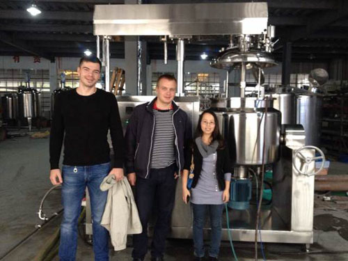 一番討論與溝通后,司機帶客戶一行人去工廠參觀板式殺菌機不銹鋼容器、乳化機等設(shè)備,并一起合影留念。