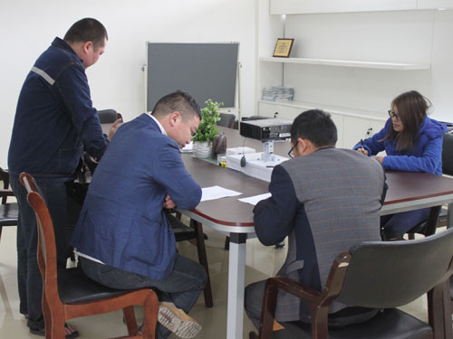 2015年4月9日,浙江杭州客戶(hù)需要定制一臺(tái)發(fā)酵罐,來(lái)我公司與銷(xiāo)售經(jīng)理和技術(shù)工程師進(jìn)行具體細(xì)節(jié)的洽談。