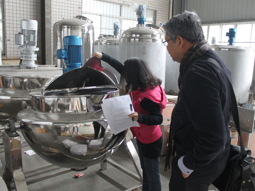 經(jīng)過與業(yè)務(wù)員的多次溝通與確認(rèn),新加坡客戶于2015年3月12日在我公司下單一臺(tái)600L高壓蒸煮鍋。目前設(shè)備已接近收尾工作,客戶來我公司驗(yàn)貨,業(yè)務(wù)員熱情接待并為其講解了我公司的其它機(jī)械設(shè)備。