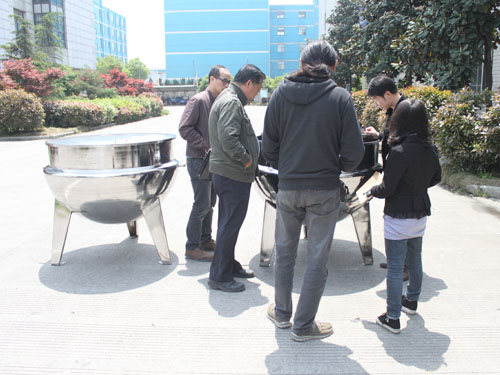 圖為客戶參觀準備包裝發貨的立式夾層鍋