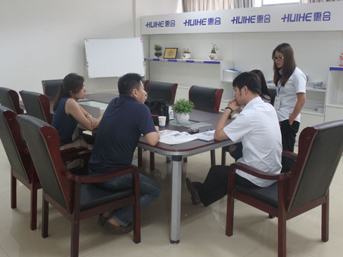 在業務部經理和工程師的陪同下,兩位馬來西亞客戶分別參觀了我們的生產車間、倉庫和成品展示區,工程師也給客戶進行了實地操作和演示。對于客戶提出的各類問題,我們都給予了詳細認真的解答。在參觀過程中,馬來西亞客戶對惠合企業的生產規模、產品工藝和質量給予了高度的肯定,并表露出希望雙方能夠達成合作的意愿。