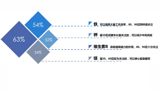 調查結果顯示,消費者除關注蛋白質和鈣兩項營養指標外,對維生素B、鐵和鉀元素的關注度也較高,希望可以標注在包裝上。年輕人更多地將液態奶作為早餐飲品,老年人更多地將液態奶作為睡前飲品。