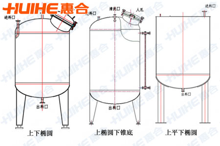 1、按結構形式分為:上開蓋下斜底、上開蓋下錐形封頭、上下錐形封頭、上下橢圓封頭